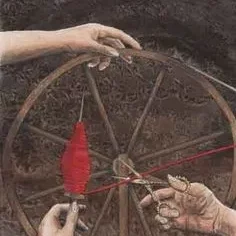 Chaque laine que je file et que je teinte est « unique ». La relation entre la légende des MOIRES & ma laine est que comme les 3 sœurs filaient le destin unique de chaque être humain, je file le destin unique de chacune de mes laines.