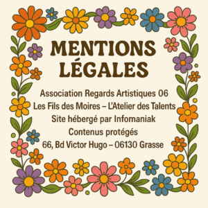 L’ensemble des contenus du site (textes, images, photos, créations graphiques, illustrations Flower Power, logos) est la propriété exclusive de Regards Artistiques 06, sauf mention contraire.